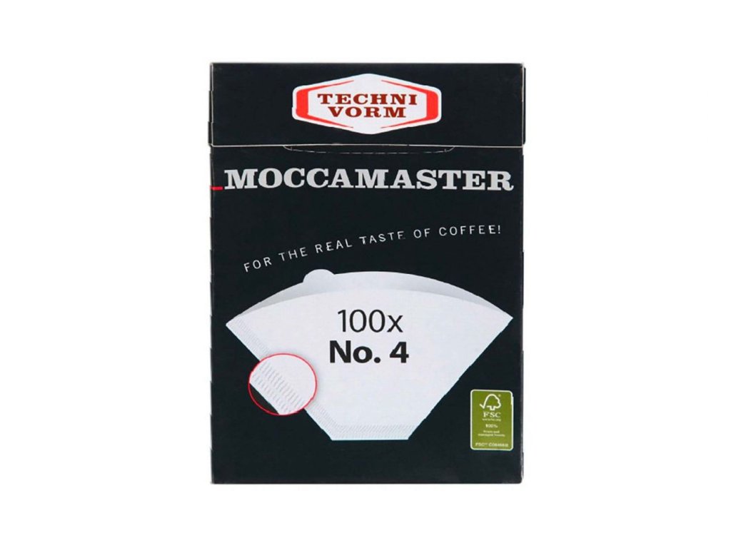 Bělené papírové filtry Moccamaster pro přípravu překapávané kávy. Balení obsahuje 100 ks. Velikost 4.